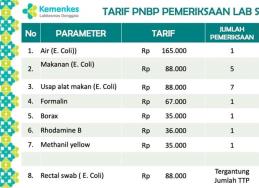 Kantor Balai Laboratorium Kesehatan Masyarakat Donggala, siap memeriksa sampel Makanan dari SPPG (Badan Gizi Nasional) dan keracunan makanan lengkap dengan tarif PNBP sebagai berikut ...selengkapnya |